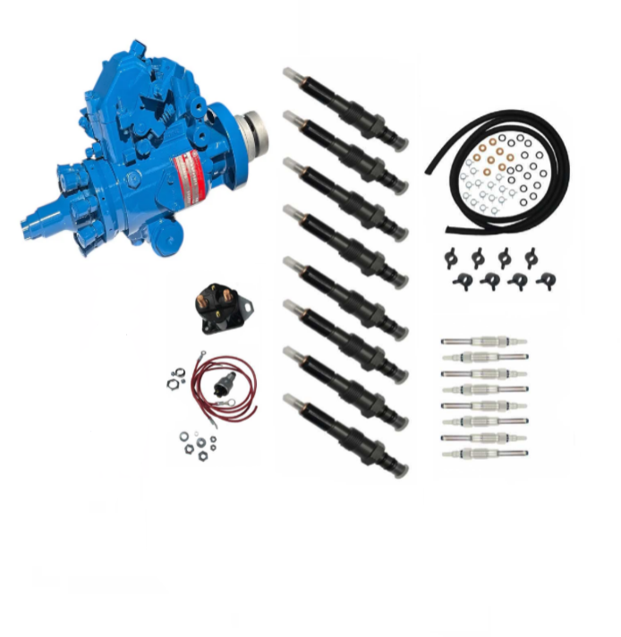 This Work Horse 200K Mileage Maintenance Kit for 6.9L 7.3L IDI Ford International  is a great option for engines that need a comprehensive overhaul maintenance kit for their fuel system. This kit includes a fully Remanufactured Work Horse DB2 fuel injection pump (core return required), 8 IDI injectors (core return required), return line kit for injector installation, 8 glow plugs, and the original manual style glow plug relay controller solenoid kit with the 'push to hold' button switch.