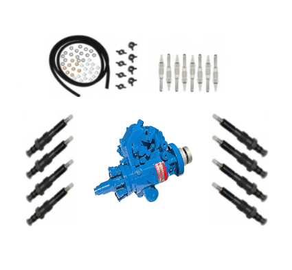 This Fuel System Maintenance Kit for 6.9L 7.3L IDI Ford International  is a great option for engines that need a comprehensive overhaul maintenance kit for their fuel system. This kit includes a fully DB2 fuel injection pump (core return required), 8 IDI injectors (core return required), return line kit for injector installation, 8 glow plugs, and the original manual style glow plug relay controller solenoid kit with the 'push to hold' button switch.